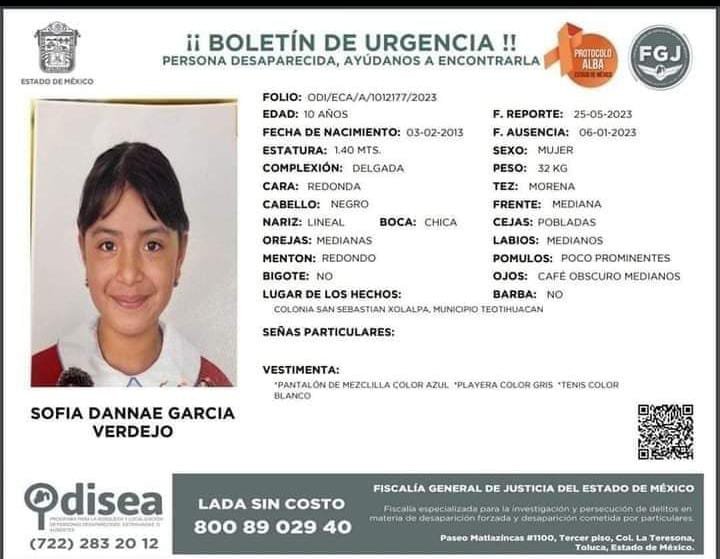¡URGENTE! Difundir Sofia Dannae García Verdejo se encuentra extraviada