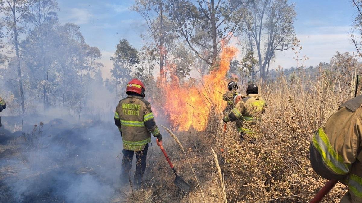 - Brigadas de ejidatarios, Probosque y Bomberos de Texcoco laboran en forma coordinada para combatir el incendio forestal