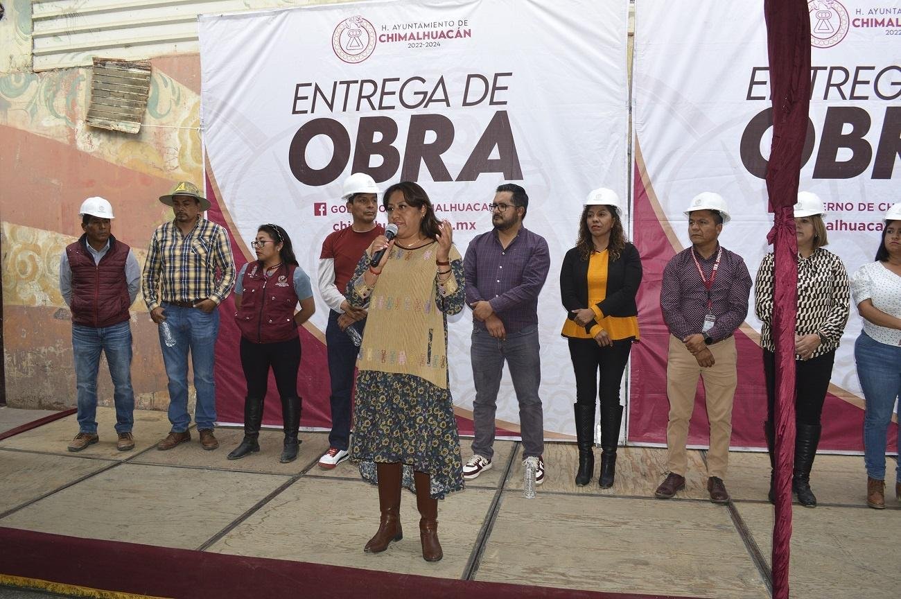 Chimalhuacán Estado de México.- La Presidenta Municipal de Chimalhuacán, Xóchitl Flores Jiménez, inauguró obras de embellecimiento y mejoramiento en la Avenida Manuel Alas, en el tramo de Avenida del Peñón y las Torres, en donde se construyó pavimento, guarniciones y ampliación y estampado tipo rústico de banquetas. Esta obra beneficiará a más de 4 mil personas de los Barrios Talabarteros, Vidrieros y Plateros.